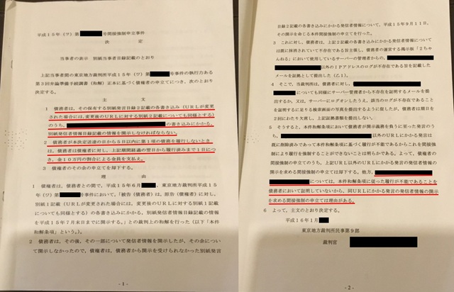 しかし、和解に至るまでの間に裁判所による「発信者情報消去禁止仮処分」が出ており、かつ和解条項では「URLが変更になった場合には、変更後のURLに対する別紙2記載(の書き込みにかかる発信者情報目録記載の情報)についても同様とする」とされている。