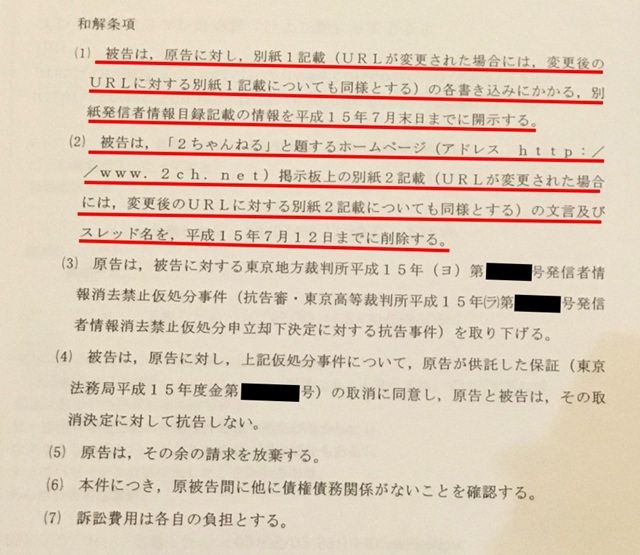 (2)ひろゆき氏は2ちゃんねる上の所定の投稿とスレッドを同年7月12日までに削除する